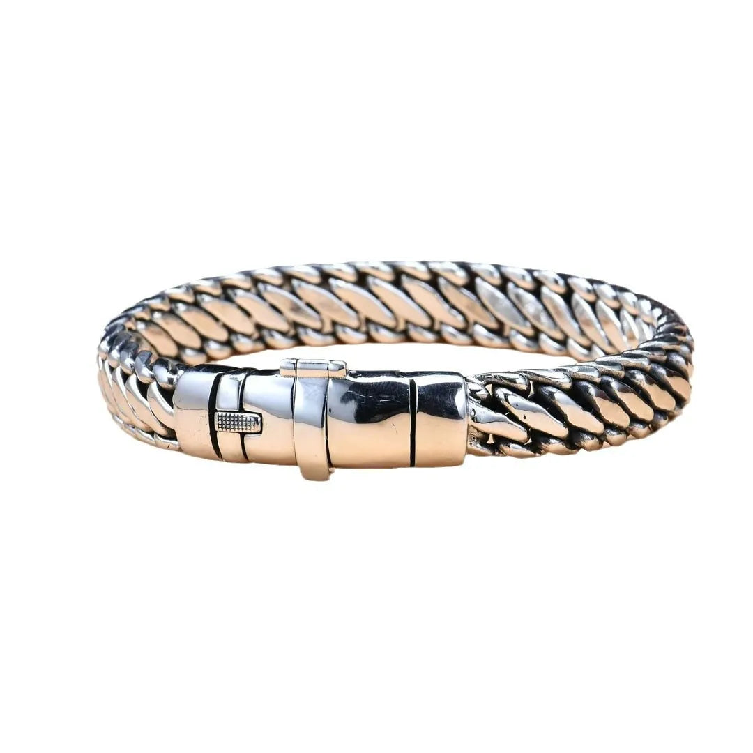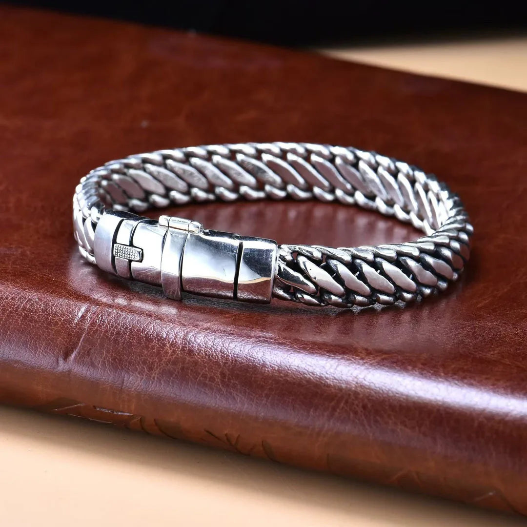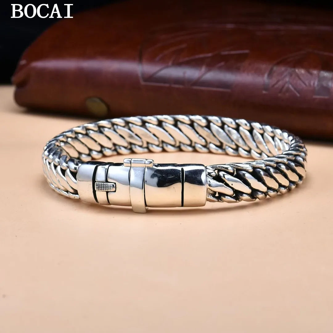 BOCAI S925 Sterling Silver Punk Personality Simple And Atmospheric Three Whip Bracelet Men's Gift