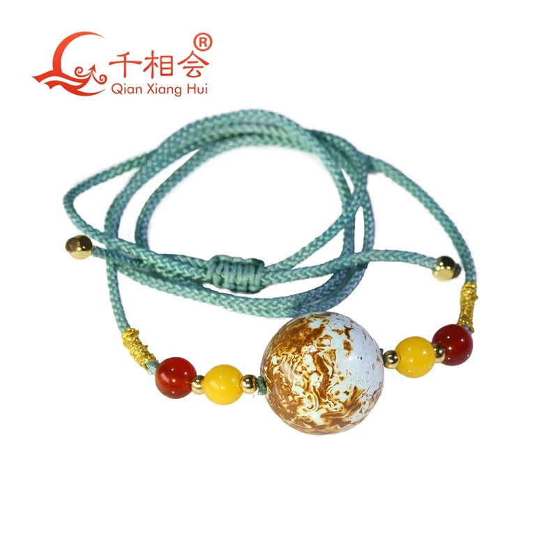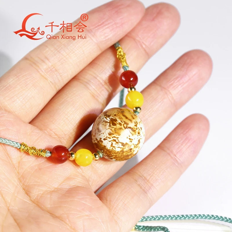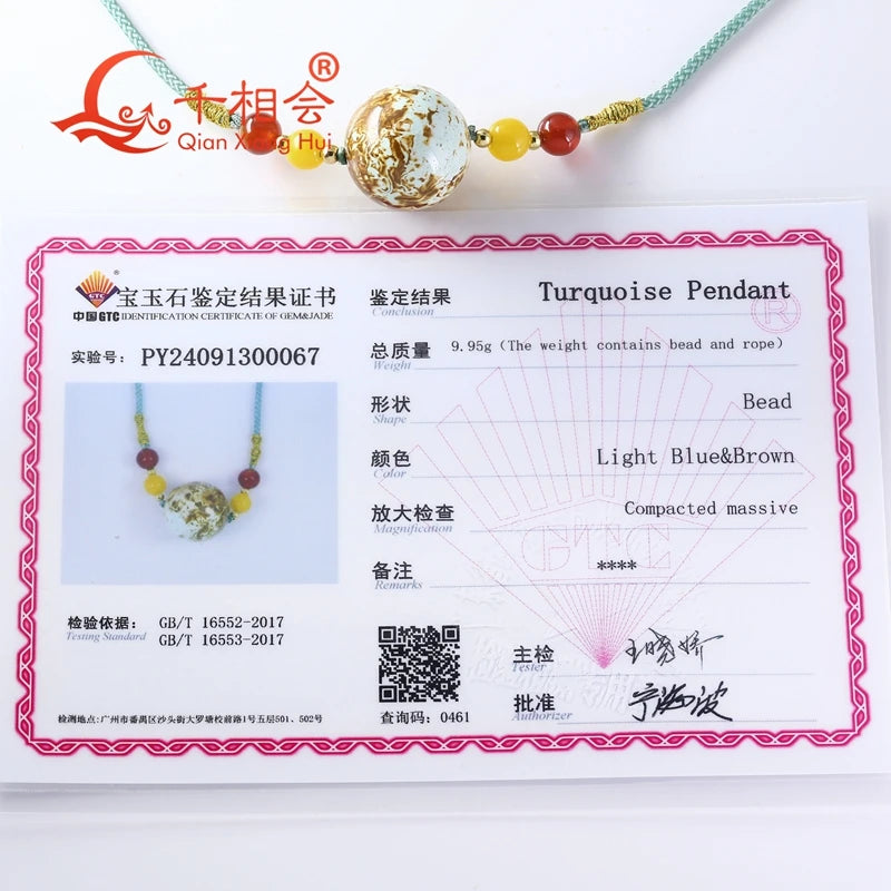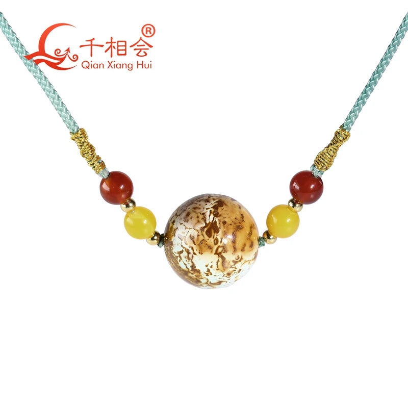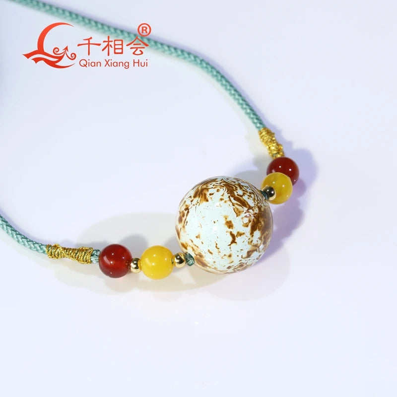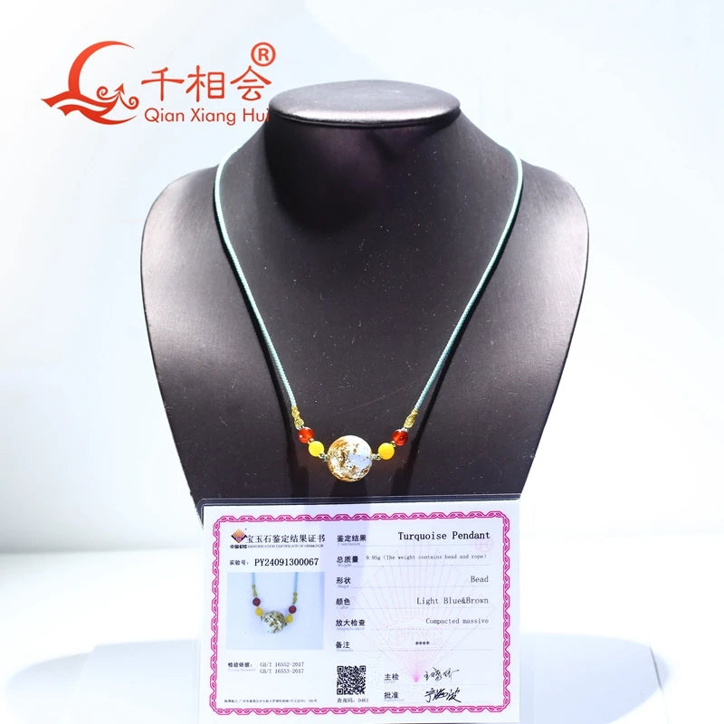Fully hand-woven collarbone men's women's cross-section 9.95g natural ball pattern turquoise transfer beads sweater necklace