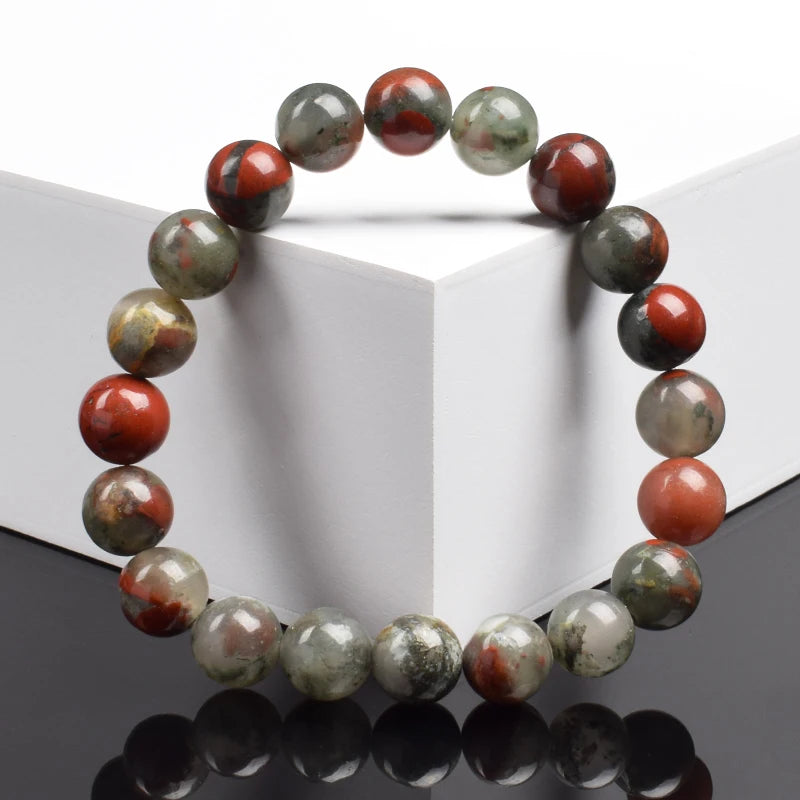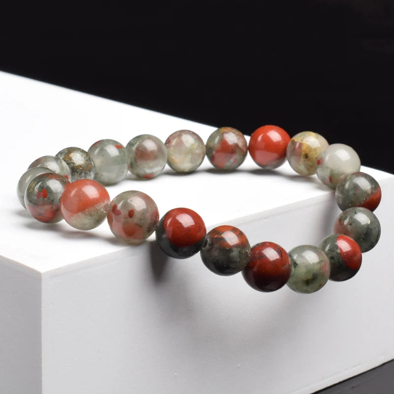 Channel bold, grounding energy with this Natural African Bloodstone Bracelet, handcrafted from genuine bloodstone beads sourced from Africa. Known as a stone of courage and vitality, bloodstone has been revered since ancient times for its ability to boost inner strength, purify energy, and enhance resilience.