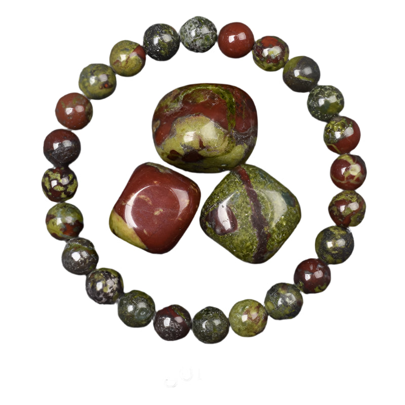 Tap into legendary strength with this Natural Dragon Blood Stone Bracelet, crafted from authentic dragon blood jasper—a rare stone known for its deep green base and rich crimson patterns. Named after the mythical power of dragons, this stone symbolizes courage, vitality, and protection, making it a powerful companion for those walking a path of purpose.