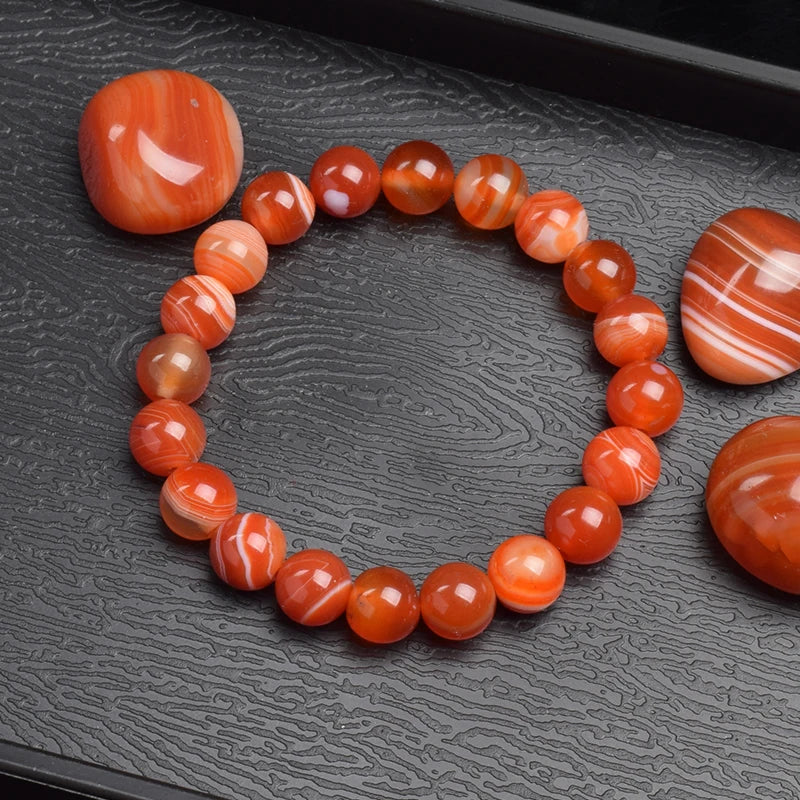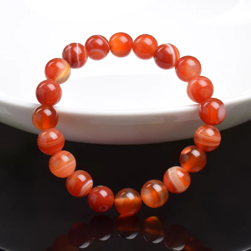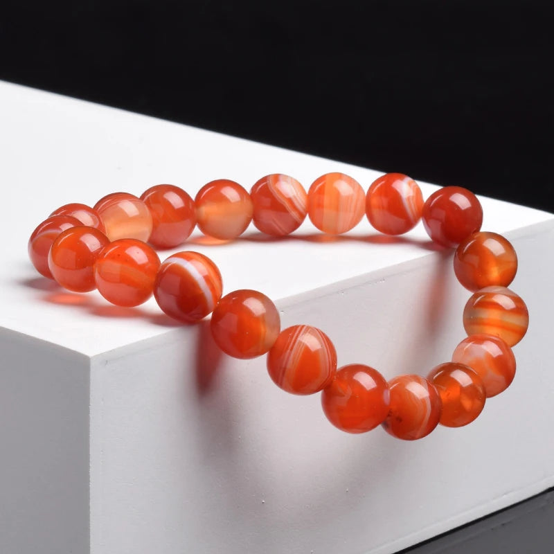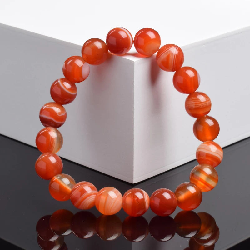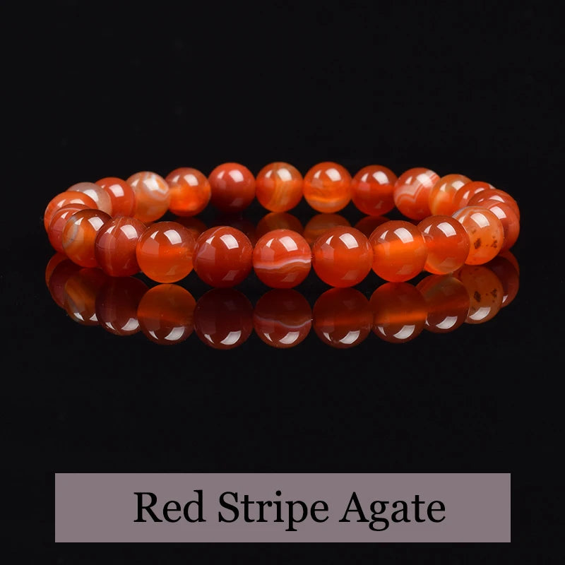 Ignite your inner strength with this Natural Red Stripes Agate Bracelet, featuring deep red hues and striking striped patterns that make each bead uniquely beautiful. Known for its grounding and protective energy, striped agate helps balance emotions, enhance focus, and promote stability in all areas of life.