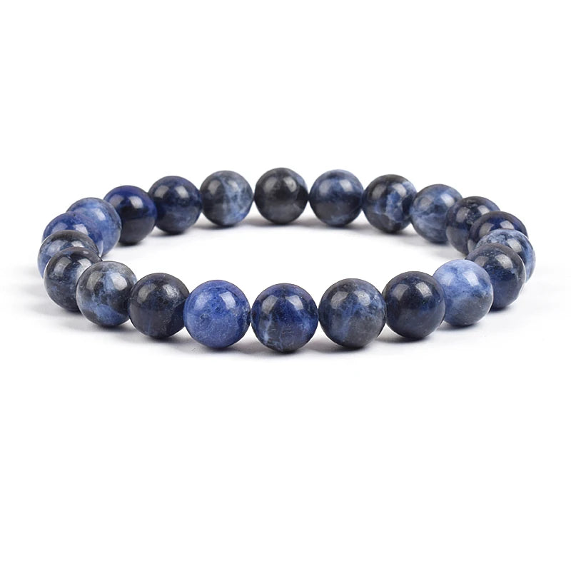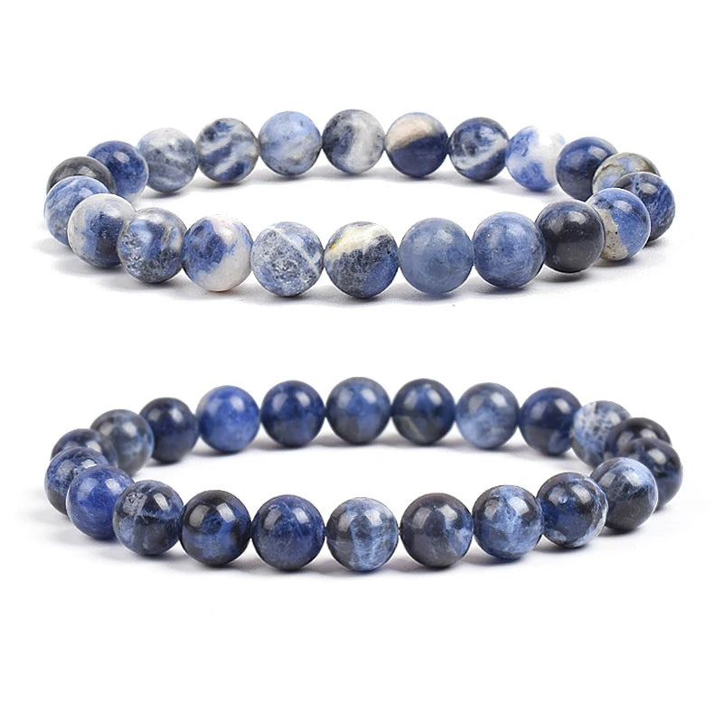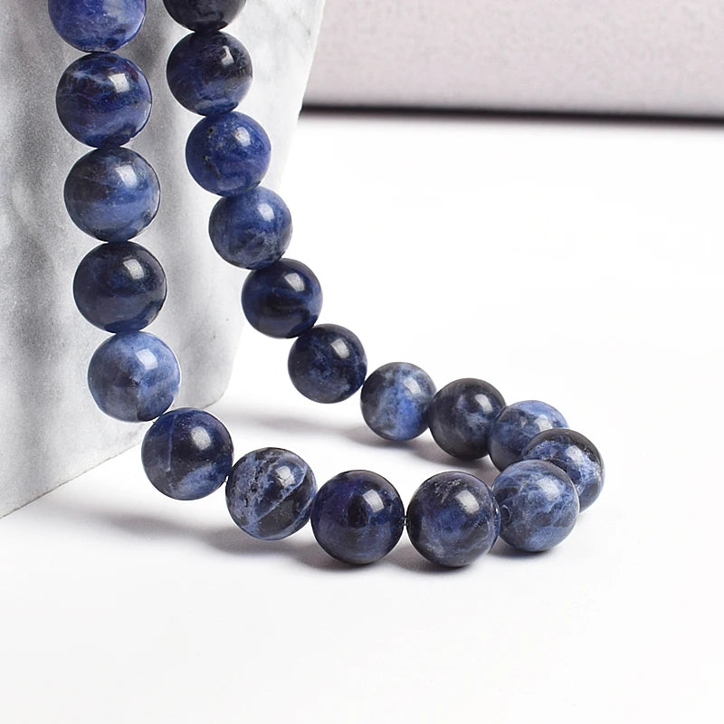 Embrace deep thought and inner peace with this Natural Sodalite Beads Bracelet, featuring beautifully polished dark blue stones flecked with subtle white and gray veining. Known as the Stone of Logic and Truth, sodalite enhances mental clarity, emotional balance, and self-expression—making it perfect for thinkers, creatives, and seekers of calm.