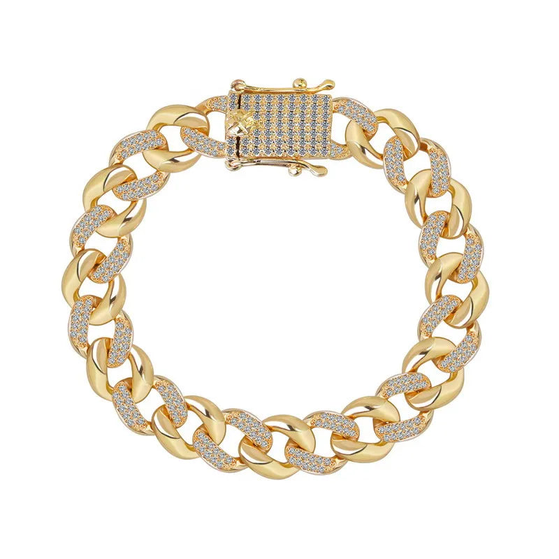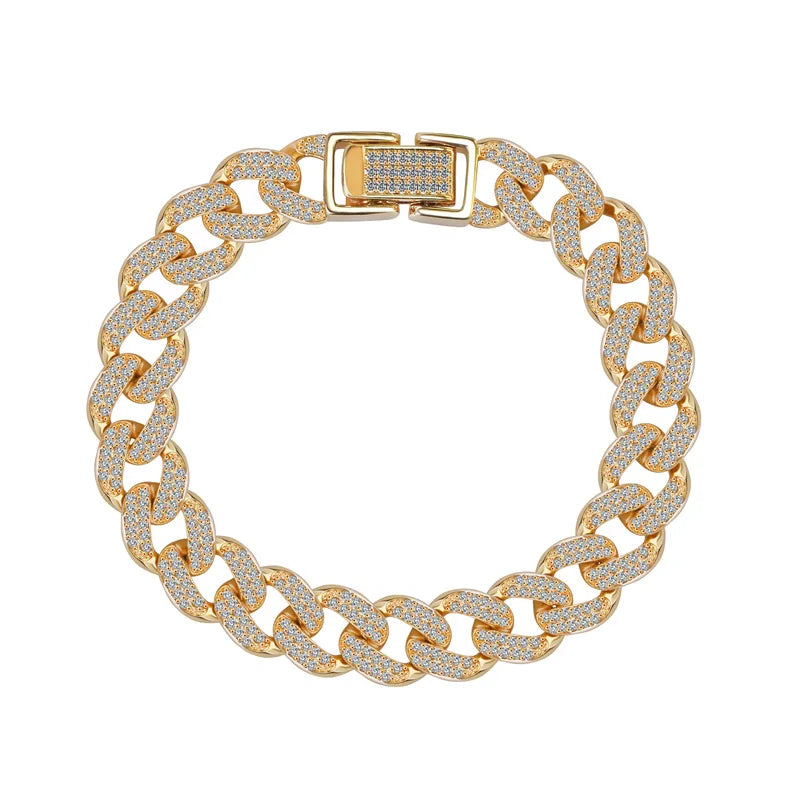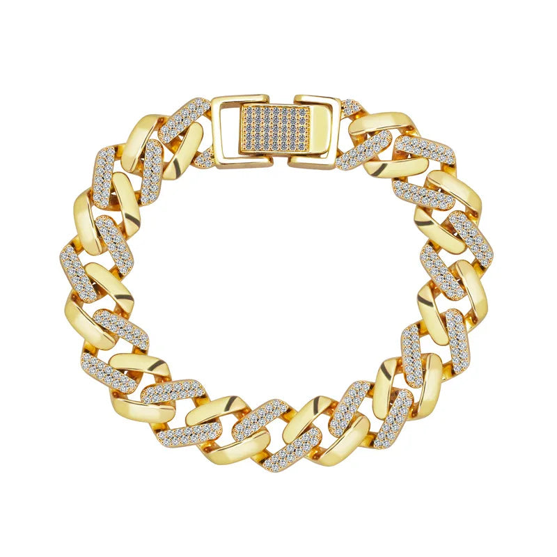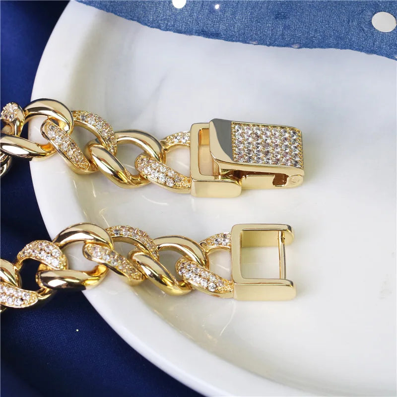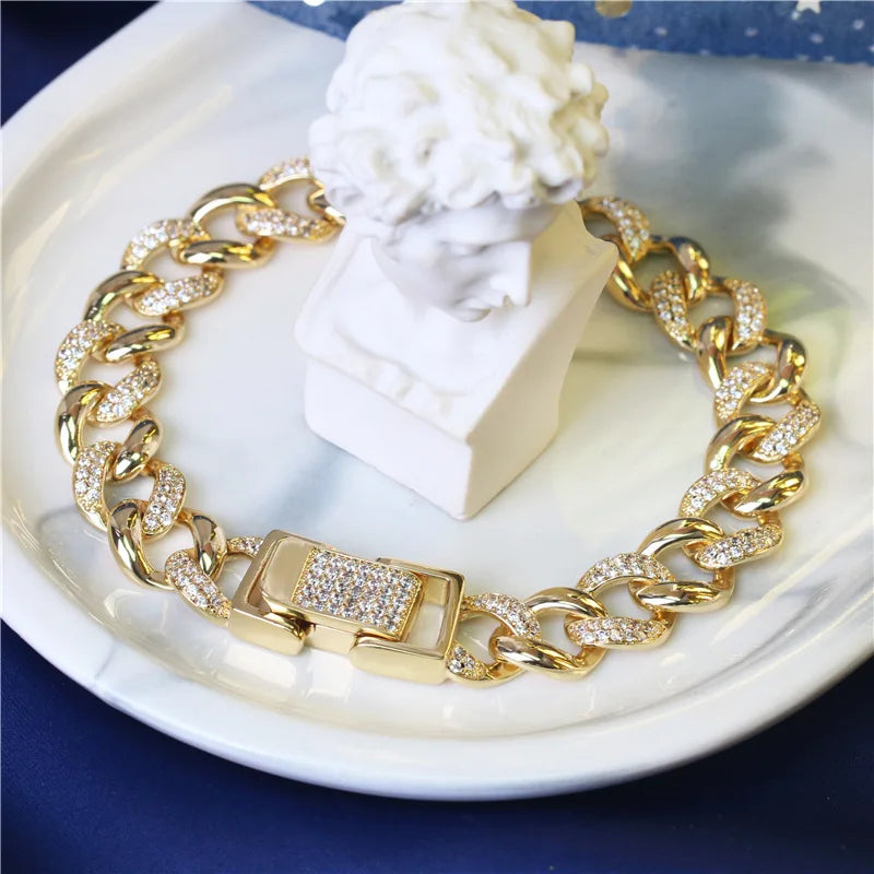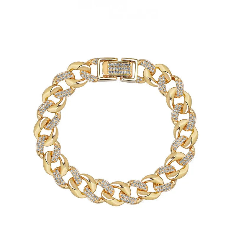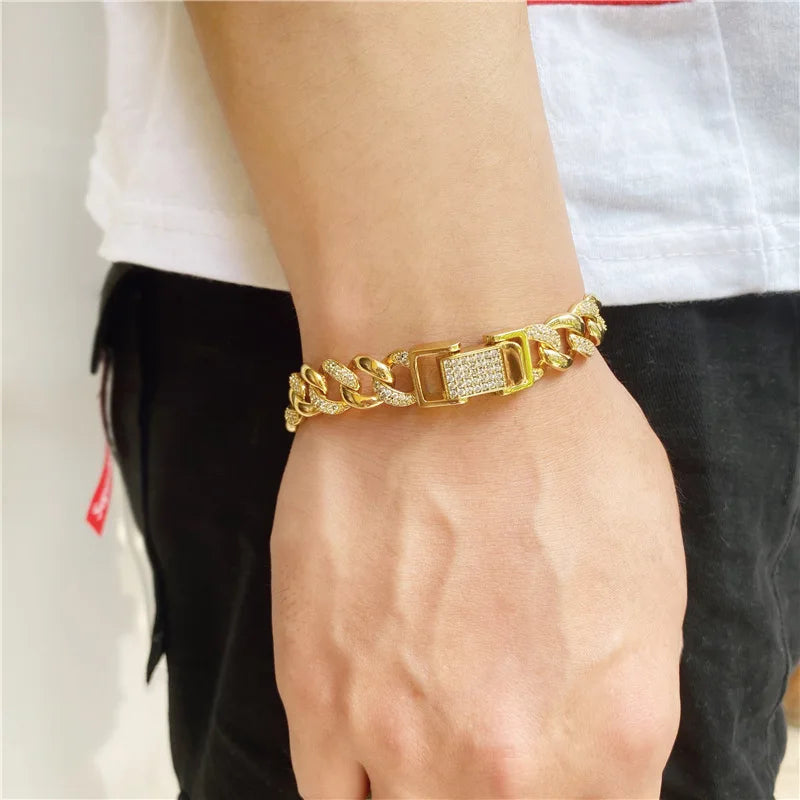 New Deisgn Bracelet For Men Copper Shine Zircon Cuban Chain Bangle FashionTrendsetter Hiphop Rock Women's Creative Bracelet Gift