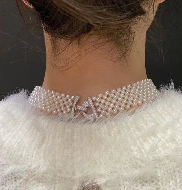 Pearl Necklace Handwoven S925 Silver, Ladies Jewelry Temperament Fashion Jewelry